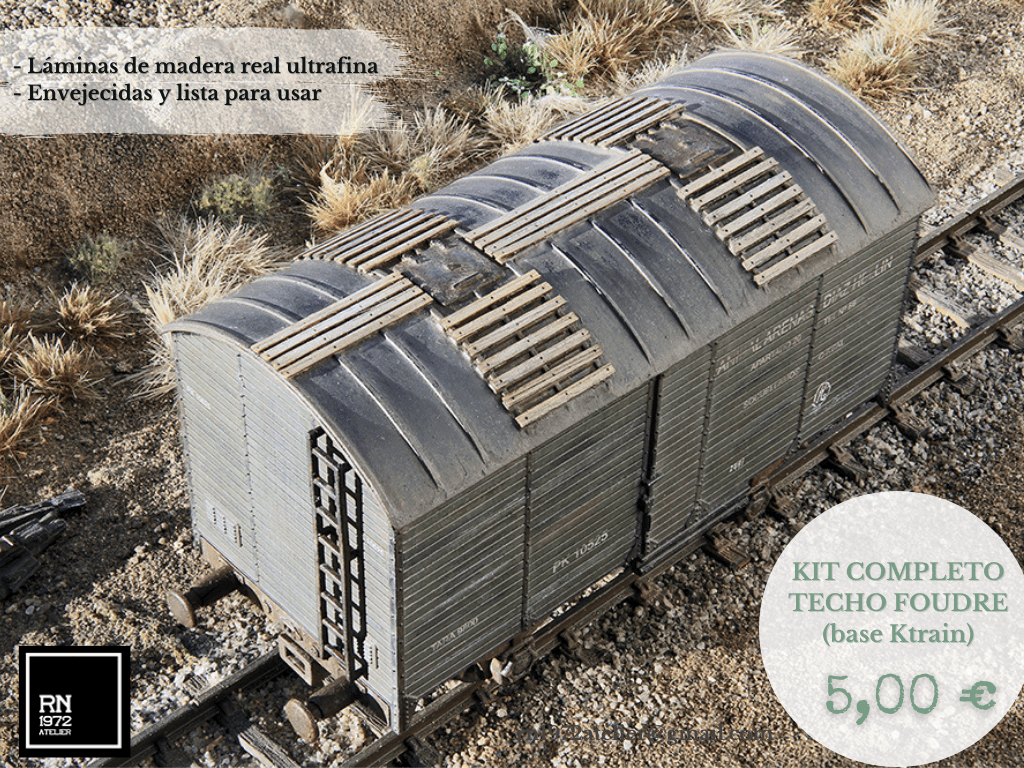 Kits y complementos para los techos del material rodante, confeccionados en madera real extrafina, envejecidos artesanalmente y listos para su uso. El contenido de los kits varía en función del vehículo.
